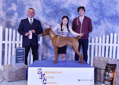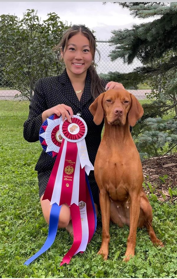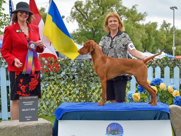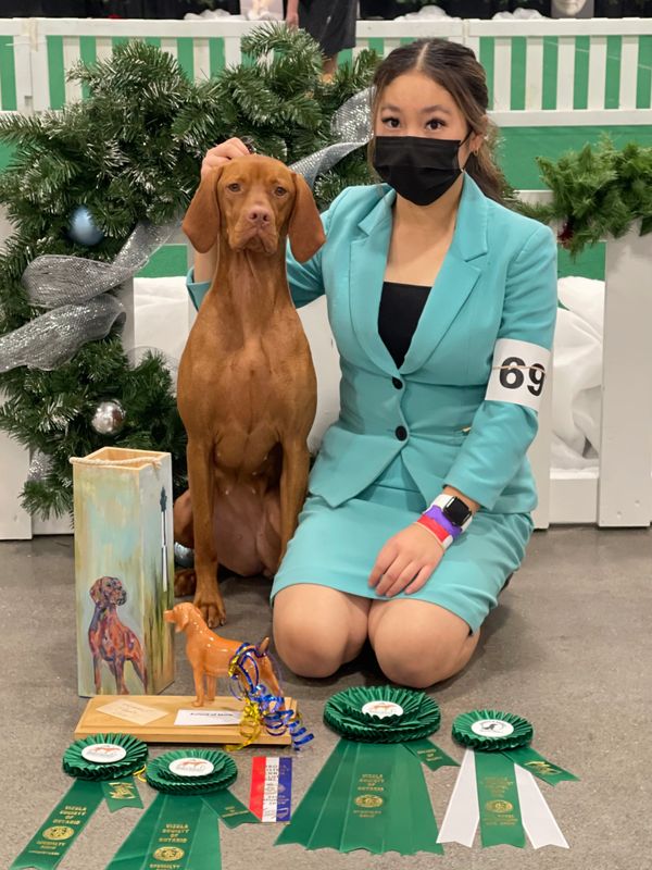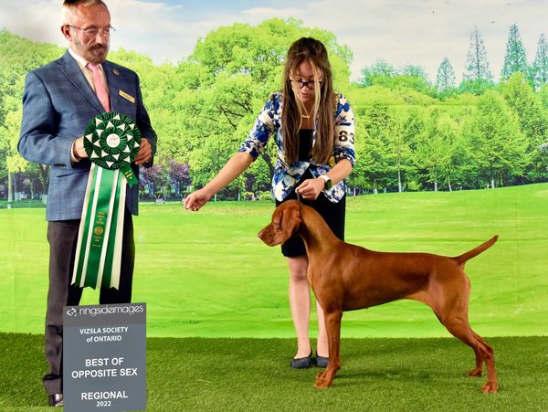 Clarkson and his owner/handler won a prestigious Best of Opposite at the Vizsla Society of Ontario Regional Specialty that took place at the Aurora & District Kennel Club Show at the Toronto International