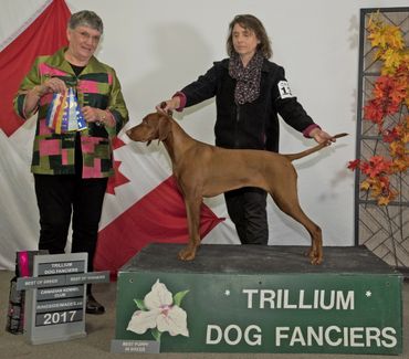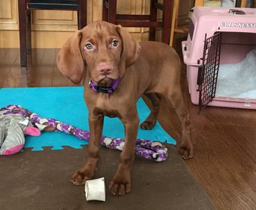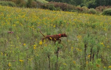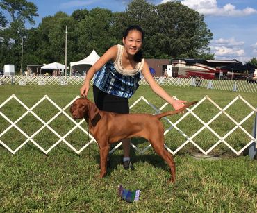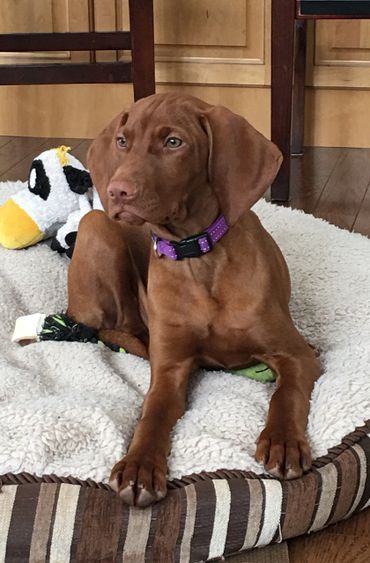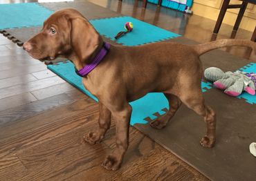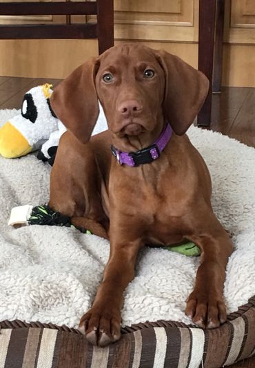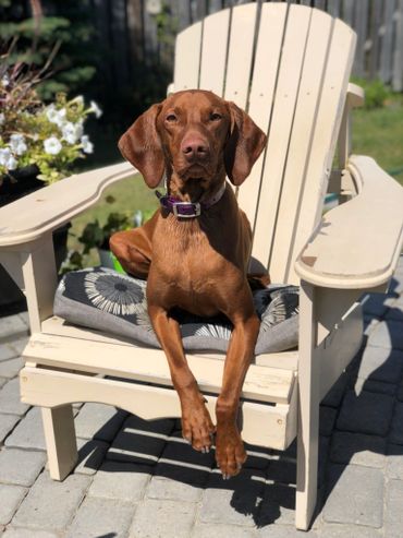 Lace is Pink's grand-daughter out of Dolly, a female we proudly sold to Egerton Vizslas as a puppy. She is accomplished with both conformation and field titles to her name. More importantly, she is an absolute joy here at Calabri with a phenomenal temperament that is so easy to live with.