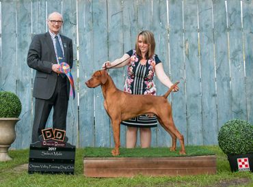 Remy is an outstanding boy that has accomplished a lot for his young age. With limited showing in conformation he is a Grand Champion with Multiple Specialty wins to his name. He is a complete natural in the field and has earned his Field Dog title as well as Prize II NAVHDA Natural Ability title. To top all of this off, Remy has an outstanding temperament. He is a sweet, exuberant, eager to please, fun loving dog.